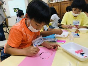 その後は、みんなでオーストラリアの先住民族による《アボリジナルアート》体験しました。