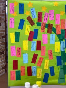 3つの内容で、願いごとを書き、ディスプレイしていきました。そして願いごとのシェア。